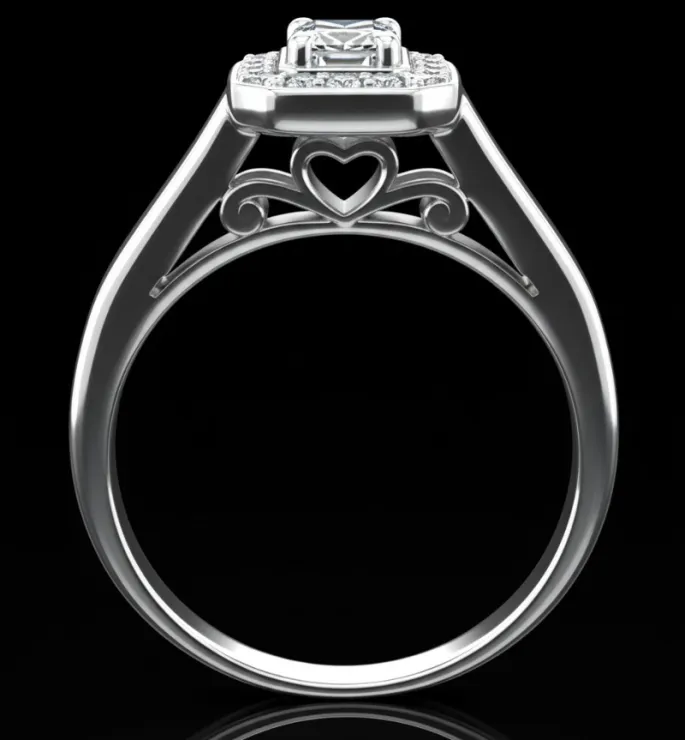 JST Pure Emerald Cut Halo Engagement Ring in 18K and 24K
