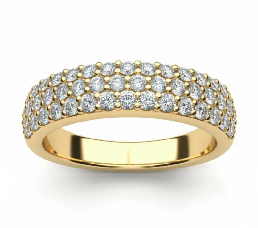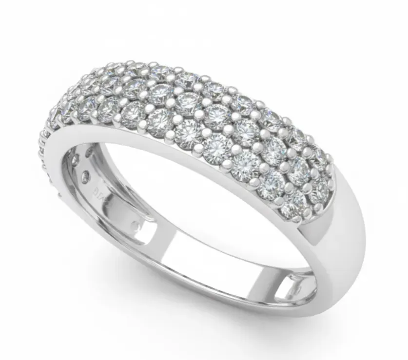 R1 Pave Natural Diamond Tri-Rows Band Ring in 18K