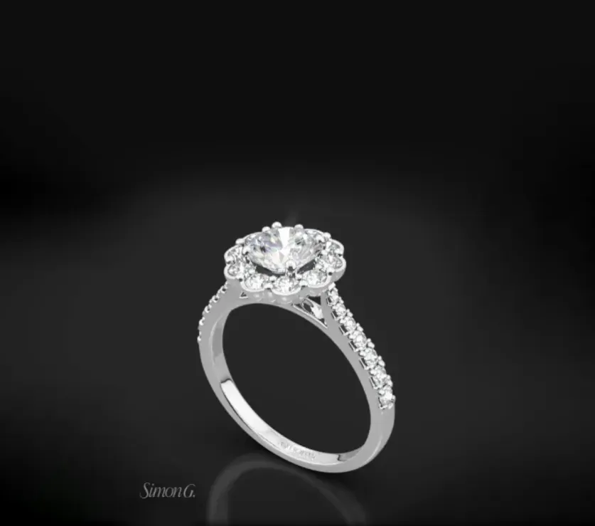 Simon G. Passion 18k White Gold 533352 Passion Halo Diamond Engagement Ring