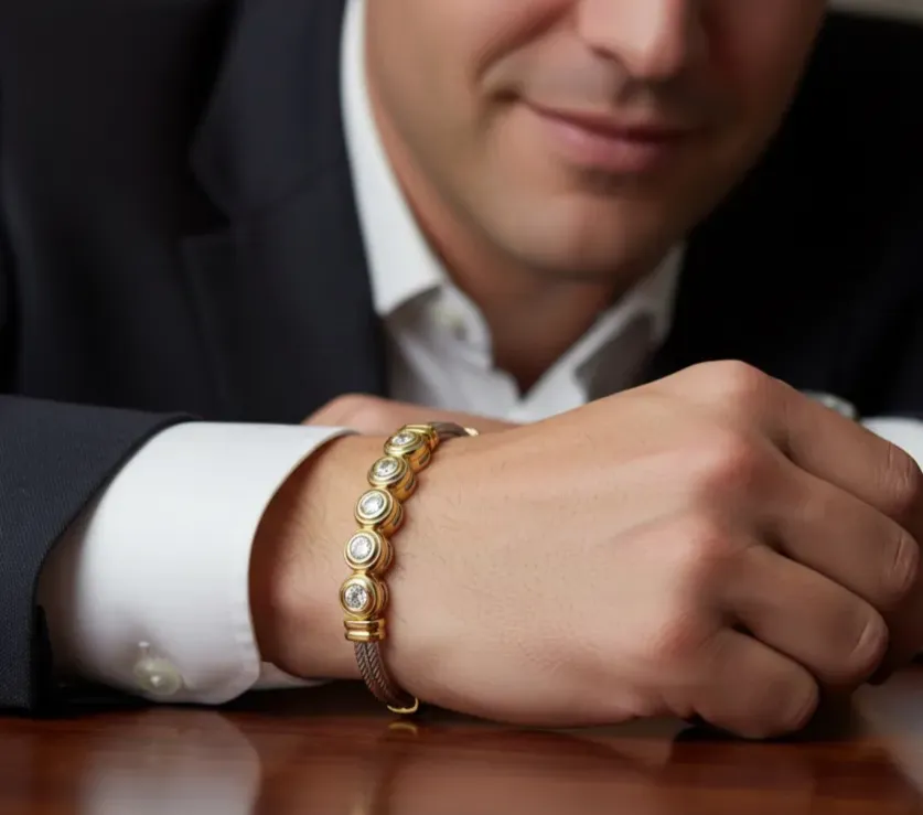 Zales 14k Gold Natural Diamond 5-Stone Cable Bangle Bracelet Bezel Setting